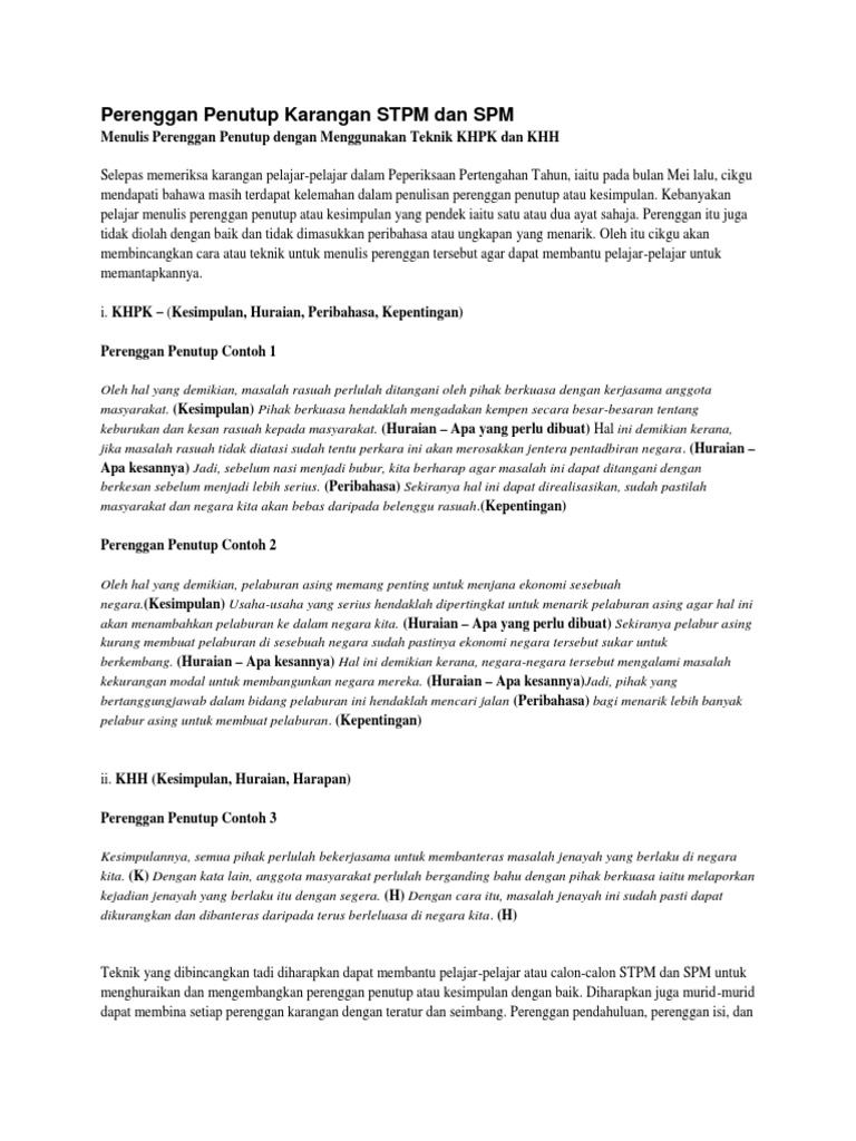 Perenggan Penutup Karangan Stpm Dan Spm Pdf