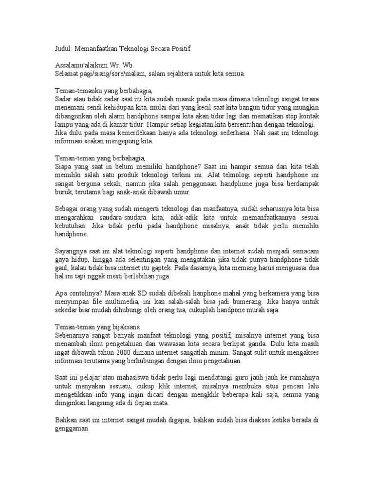 Teks Pidato Manfaat Teknologi Pdf